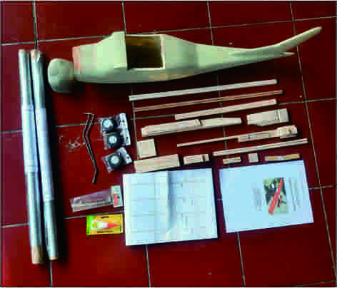| KIT | Kondisi pesawat belum dirakit, masih dalam bentuk komponen ( kayu balsa sudah dipotong) +Body FRP yg telah di Cat Primer + Aksessoris + Lem CA 20 Gram + Indocote+ Buku Petunjuk + Plan. Masih Membutuhkan Material finishing, Radio Control dan Engine |