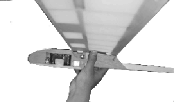Pasangkan sayap pada badan dengan bantuan wing joiner baja 3 mm dan 2 mm yang tersedia. Usahakan agar pemasangan sambungan sayap ini cukup kuat, pas dan tidak goyang . Pergunakan selotape bila perlu untuk mengunci posisi sayap kiri dan kanan agar tidak mudah lepas.