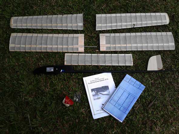 Empat bagian sayap Glider A2 ini akan dirakit dalam 4 bagian yang nantinya disambung dengan tripleks sambungan hedral, untuk itu anda tidak perlu khawatir merakit setiap bagian-bagiannya, yang terdiri atas Leading edge, Spar dan Trailing Edge secara satu demi satu menjadi 4 potong sayap, yaitu sayap tepi kiri dan kanan, sayap tengah kiri dan kanan.