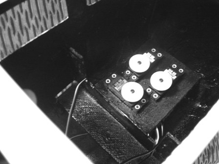 ο Rekatkan 2 triplek penguat ke bagian bawah servo tray seperti terlihat pada gambar.