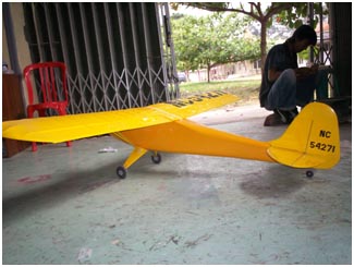 • Letakan perlengkapan radio control yang dibawa terbang sementara di badan dengan letak kira-kira seperti pada gambar rencana.