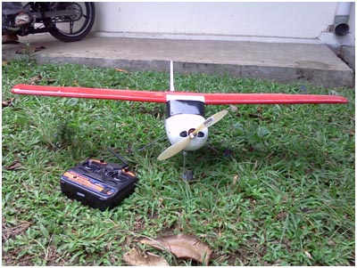 Ekor Vertikal (Fin) harus dilem dengan epoxi pada bagian belakang badan pesawat dan posisinya tegak lurus terhadap ekor horizontal.