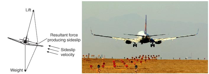 Landing in a crosswind situation could lead to side slip as the wind with cross direction will push the aircraft slip to side of the runway. Pilot should anticipate by deploying several landing technique suitable to the aircraft.
