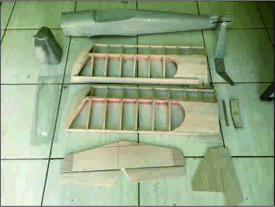 | KIT | Kondisi pesawat belum dirakit, masih dalam bentuk komponen ( kayu balsa sudah dipotong) +Body FRP yg telah di Cat Primer + Aksessoris + Lem CA 20 Gram + Indocote+ Buku Petunjuk + Plan. Masih Membutuhkan Material finishing, Radio Control dan Engine |