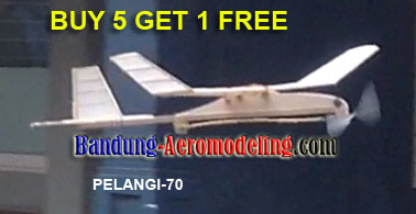 Description : Pesawat Model PELANGI 70 Rubber Powered Berat siap terbang : 60gr bentang sayap 70cm Konstruksi kerangka dari kayu balsa tidak memerlukan radio control Paket berisi 6 (enam) set.
