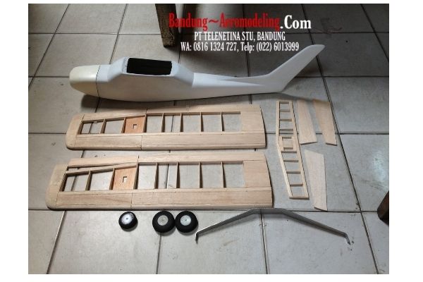 | KIT | Kondisi pesawat belum dirakit, masih dalam bentuk komponen ( kayu balsa sudah dipotong) +Body FRP yg telah di Cat Primer + Aksessoris + Lem CA 20 Gram + Indocote+ Buku Petunjuk + Plan. Masih Membutuhkan Material finishing, Radio Control dan Engine |