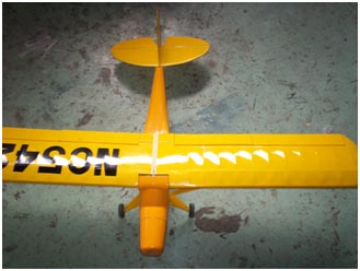 • Pasangkan sementara pushrod stabilo dan rudder di sisi badan dengan ujung belakang berada pada posisi akhir.Lihatlah gambar rencana skala penuh