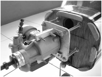 3. Pasangkan engine pada celah yang telah disediakan. Harus ada sedikitnya celah sekitar 3 mm antara sisi badan bagian depan dan sisi belakang spinner.