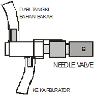 3. Pencampuran kecepatan tinggi juga disebut katup jarum atau needle valve yang akan mengatur bahan bakar udara pada kecepatan tinggi.