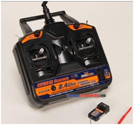 Perlengkapan pemancar radio control ditenagai dengan dengan baterai sebanyak 8 cell dan sebaiknya menggunakan baterai Nickel Cadmium (NiCd) yang dapat diisi kembali atau rechargeble. Perlengkapan R/C yang ditenagai dengan batere NiCd juga dapat mempergunakan unit-unit pengisian kembali atau recharger, dan memang baterai-baterai Nicd harganya lebih mahal dari baterai kering biasa, namun bagi anda yang cendrung melakukan penerbangan dengan rutinitas tinggi, maka biaya untuk mengganti baterai kering akan jauh lebih besar daripada anda membeli Baterai Nicd yang harganya relatif lebih mahal. Hal ini sebaiknya anda pertimbangkan.