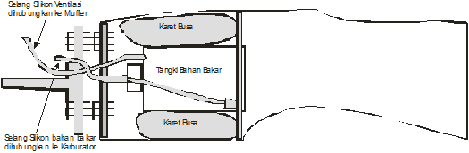2. Dengan memperhatikan gambar rencana, pasangkan tangki dan saluran bahan bakar.