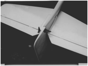 • Tempatkan kwiklink horn di bawah elevator seperti pada gambar disamping dengan posisi yang tepat, kemudian horn di pasangkan di tengah sehingga kwik link dapat bergerak keluar masuk bukaan ekor tanpa bergesekan dengan sisi-sisi samping. Pasangkan horn pada elevator.